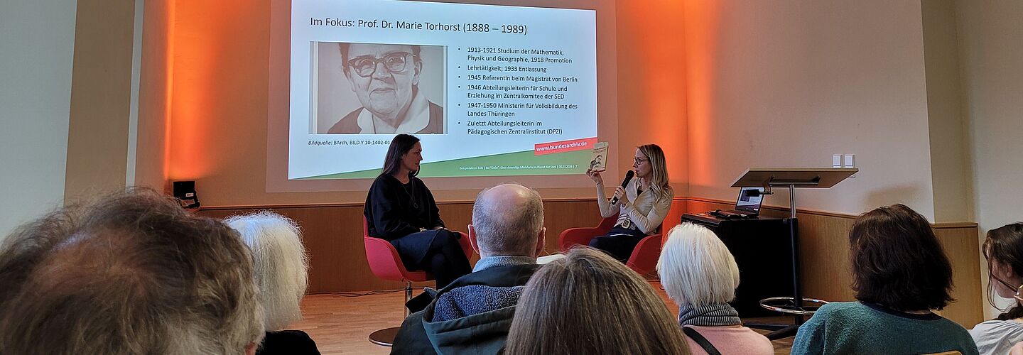 Am 30. März 2026 war Juliane Torhorst Gast im vierten Beispielaktentalk. Im Gespräch mit einer Mitarbeiterin des Bildungsteams berichtete sie über die mühsame Arbeit mit sperrigen Stasi-Unterlagen und wie sich ihr Blick auf das vermeintlich schillernde Leben ihrer Urgroßtante durch die Recherchen verändert habe. Kurz nach dem Volksaufstand vom 17. Juni 1953 hatte sich die Pädagogin Torhorst von der DDR-Geheimpolizei als Informantin „Sofie“ anwerben lassen und ihr dann bis 1959 regelmäßig Bericht erstattet, auch über Mitglieder der Familie. Eine Episode, die in der Familienerinnerung dennoch nie eine Rolle gespielt habe.
